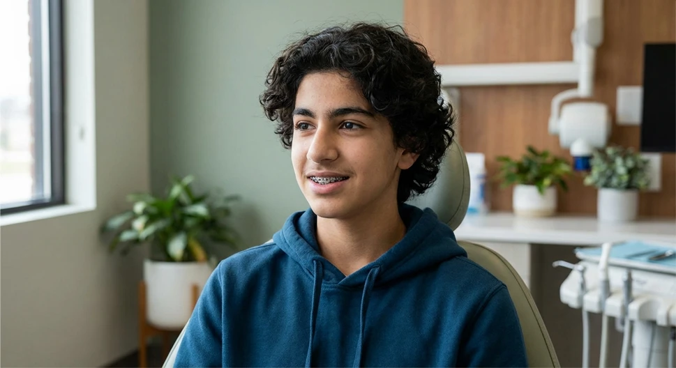 Teeth are cleaned, then brackets are placed on each tooth with adhesive. A curing light hardens the adhesive. The wire is secured with elastics or clips. Patients usually feel pressure, not pain, during this visit.